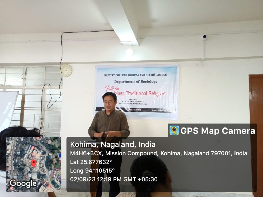 The Department of Sociology, Baptist College, organized a talk on Naga Traditional Religion on 2nd September, 2023 where both faculty and BA 3rd semester Sociology students of the Kohima and Sechii campus were present.