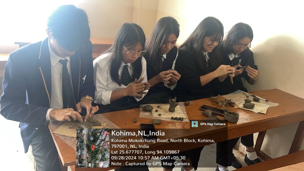 Workshops and talks took place with the participation of students, including students from various colleges, where Academic Writing workshop was taken up by Dr. Adenuo Shirat Luikham, the participants were given two tasks to solve to enhance vocabulary skills. While Creative Writing workshop was conducted by Ms.Asano Zashu who touched upon the different forms of writing, what stops a person from writing and tips for writing, she also held a practical writing session for the participants. For the Clay Modelling, Mr.Mhasiselhu Viyie provided the participants with dry leaves and models to replicate with clay, with constant suggestions and directions from the resource person. A talk on “Images and Sounds as Memory Keepers” by Ms.Sesino Yhoshu, screened some short films from the”Narratives from the Battle of Kohima” which highlighted how people related to sensory or emotional memories. And finally from “Lest we Forget” about how we remember the events of a particular day.