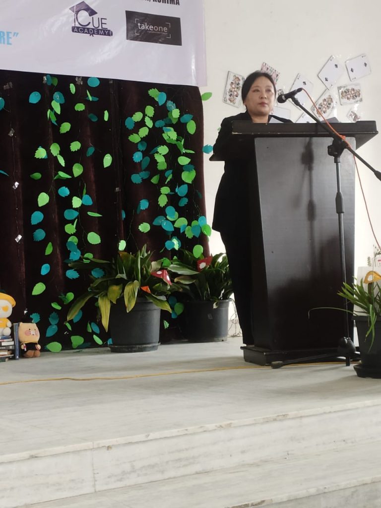 The inaugural session was graced by Dr.Enunu Sale, with a prayer from Ms. Vesatolu, followed by “Heal the World” performed by the 5th Semester students. Dr. Tsenbeni, HoD, Department of English took the stage for a note on the event, highlighting the importance of art and literature and the relation between these two medium which is a product of creative expression. She also expressed on how truth, nuances of life, visual story telling, sounds or films are all forms of art that connect to literary product and that the aim of the fest is to foster and nurture the creativity and skills of the students. Author talk was presented by Dr. Neikehienuo Mepfhuo, who spoke on the decline of the oral story telling with the advancement of technology, even though Nagas have been publishing for years it is still at a nascent stage. She talked on how we should look to rewrite and document, instead of relying on colonial tellings, not as a weapon, to injure or for revenge but to be heard and listened to seriously. She also shed light on the subtle oppression of women and the difficulty to get narrations from the victims of domestic violence, along with the lack of empathy and mismanagement of mental health issues, leading to the passing on of the trauma to the next generation. She concluded with a quote from Easterine Kire about taking pride in our own writings as Nagas.