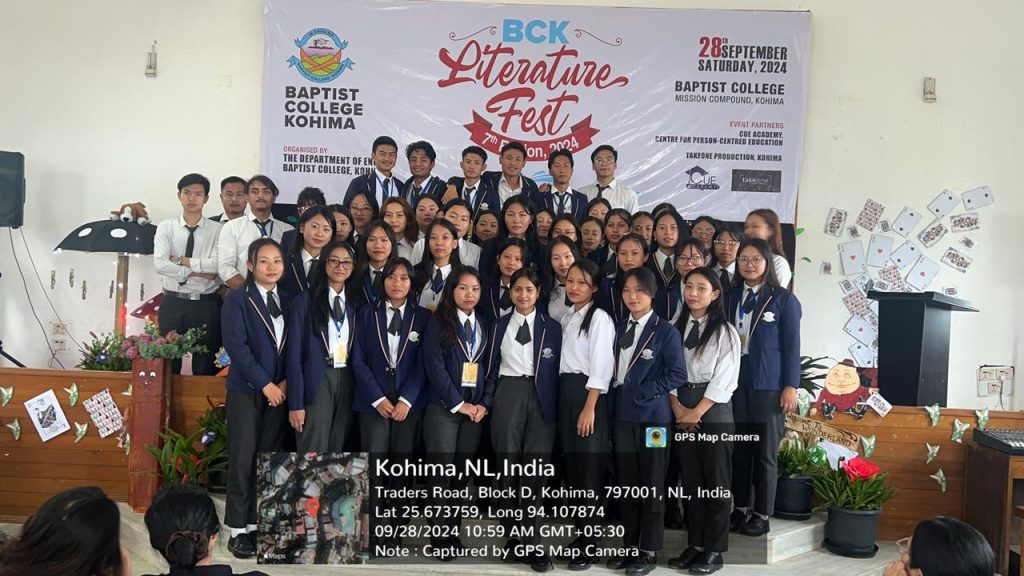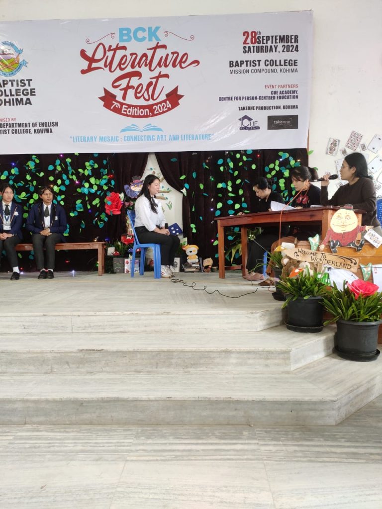 Baptist College, Kohima celebrated the 7th edition of the Literature Fest on the 28th of September,2024 under the theme “Literary Mosaic: Connecting Art and Literature”, organised by the department of English with event partners CUE Academy, Centre for Person-Centred Education and TakeOne production, Kohima.