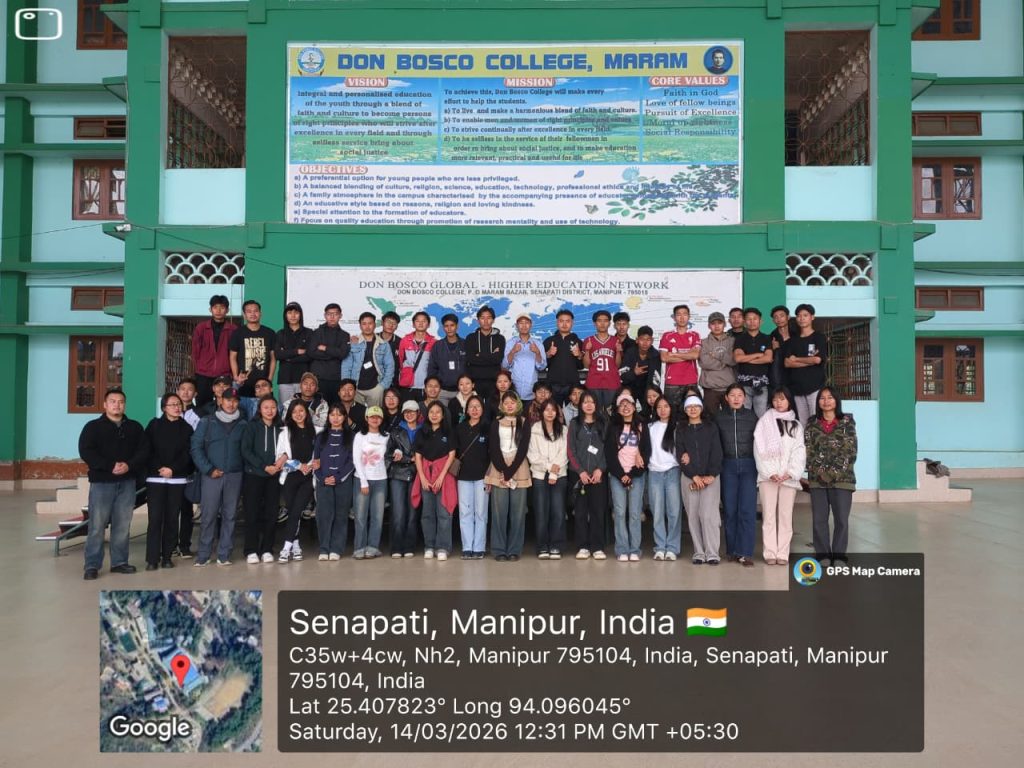 The group also visited Don Bosco College, Maram, where students explored the campus and observed the infrastructure and facilities of the institution. The visit helped them gain exposure to the learning environment of a higher educational institution in Manipur. The group then proceeded to Namhai Zho, located along the banks of Barak river. It provided an opportunity for students to observe the natural environment and understand the geographical importance of the river.