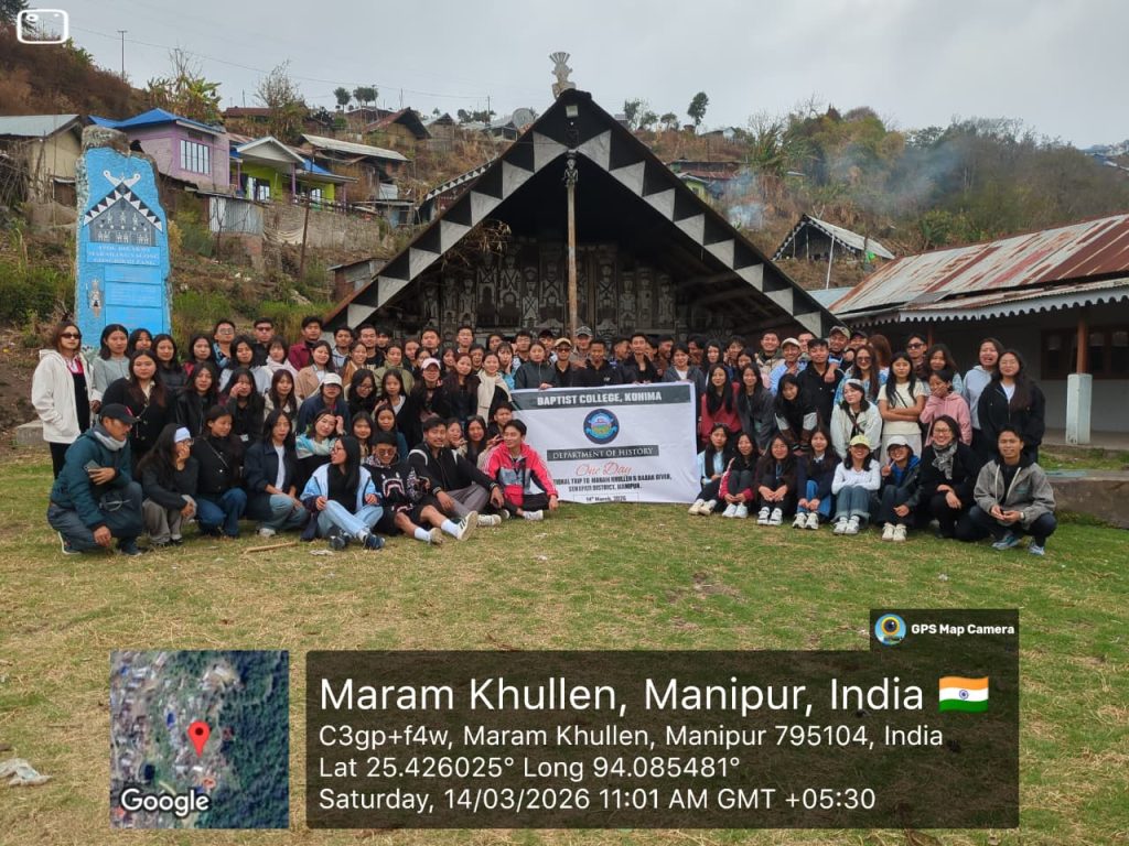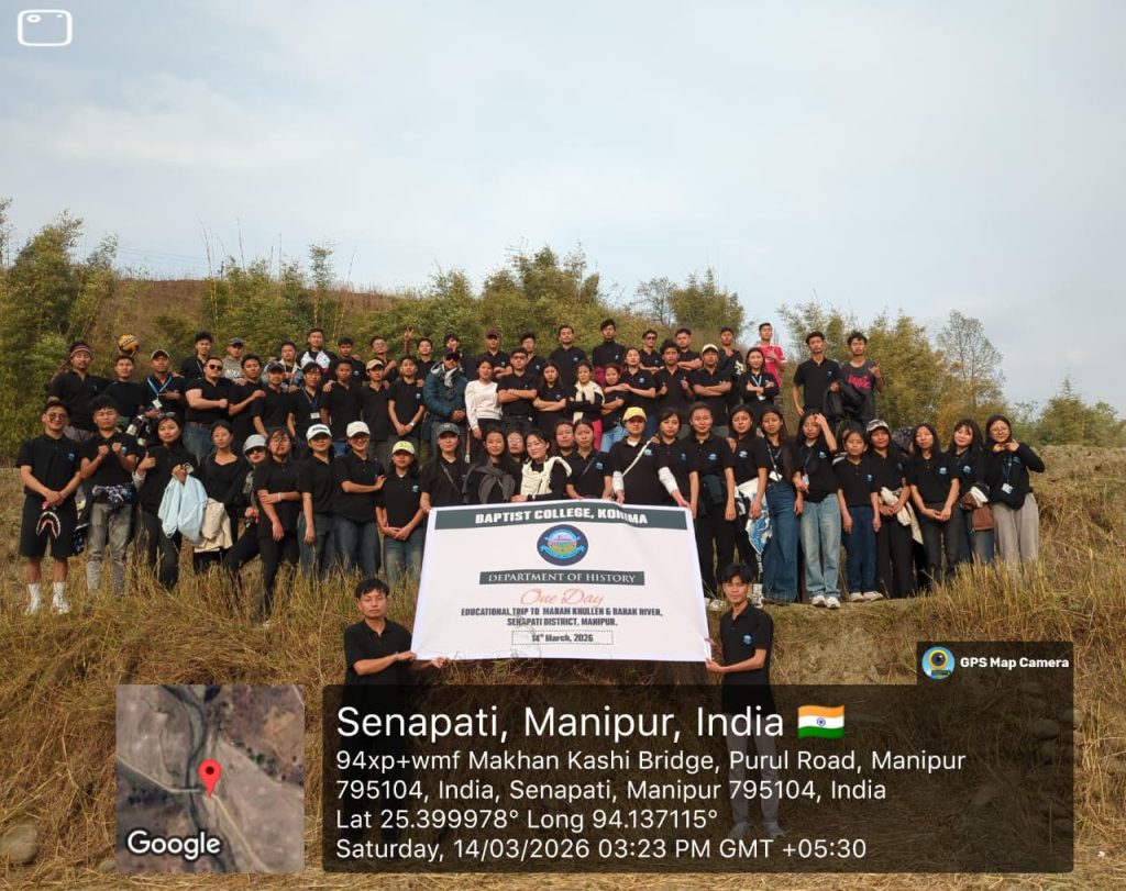 The Department of History organized a one-day educational trip to Senapati district in Manipur, on 14th March, 2026 for the B.A 6th Semester History honours students as part of its academic activities. The aim of the trip was to provide students with field-based learning and exposure to historical, cultural and geographical aspects of the region. A total of 90 students along with three teaching faculty participated in the trip.