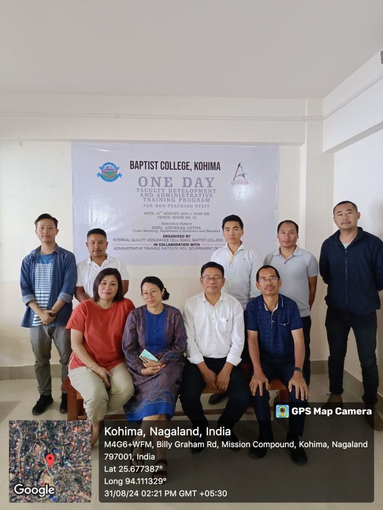 A One-Day Faculty Development and Administrative Training Program for teaching and non- teaching staff was organised by IQAC, Baptist College, Kohima in collaboration with Administrative Training Institute,ATI , Government of Nagaland, on 31st August 2024 , 10 AM at the IQAC Room and Room no. 12.