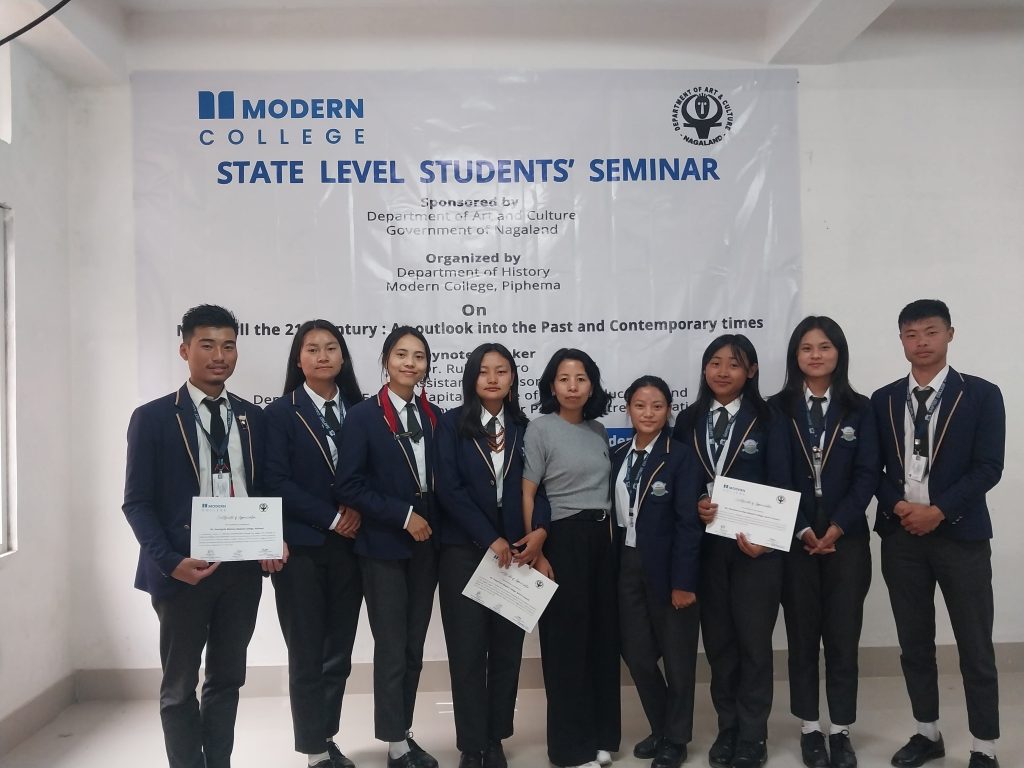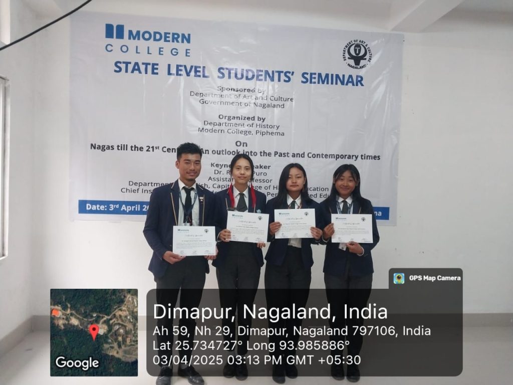 A State Level Students’ Seminar was held at Modern College, Piphema Organised by the Department of History, Modern College, Piphema and sponsored by Department of Art and Culture, Government of Nagaland, on the theme “Nagas till the 21st Century: An Outlook into the Past and Contemporary Times” was held on 3rd April, 2025, at the aforementioned College. There were a total of 18 individual and 4 group presentations.