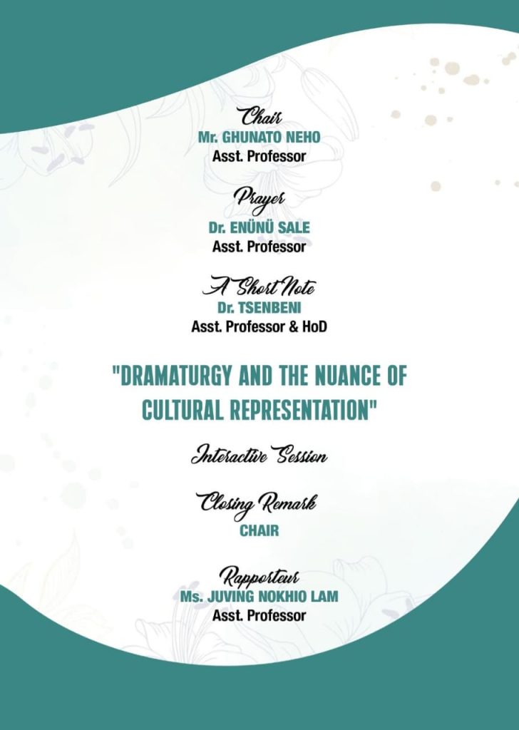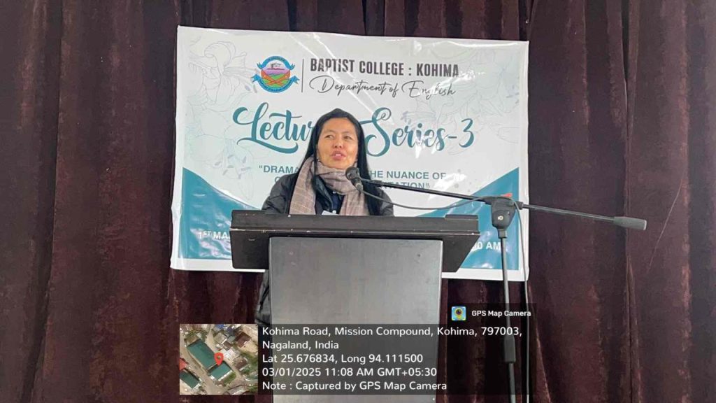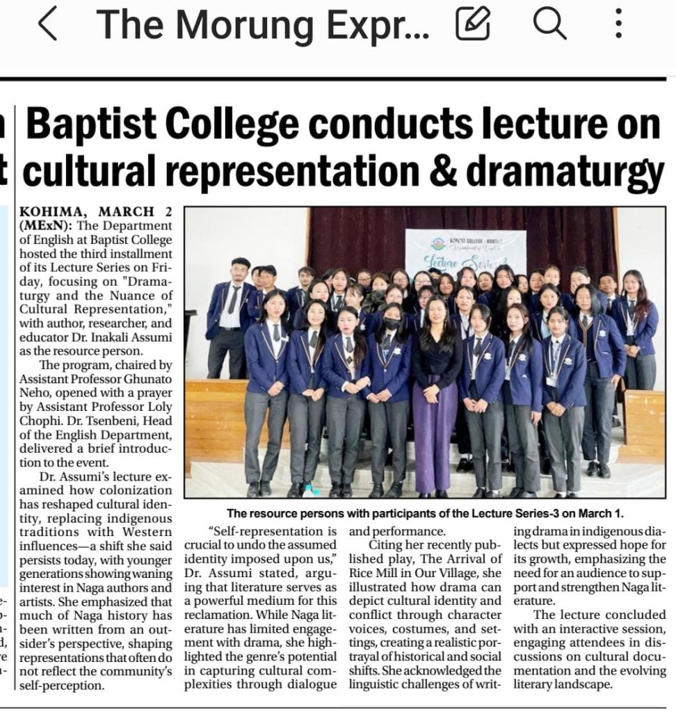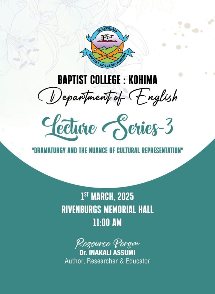 The Department of English, Baptist College organized the Lecture Series-3 on 1st March 2025 with Dr.Inakali Assumi, Author, Researcher and Educator as the resource person for “Dramaturgy and the Nuance of Cultural Representation”.