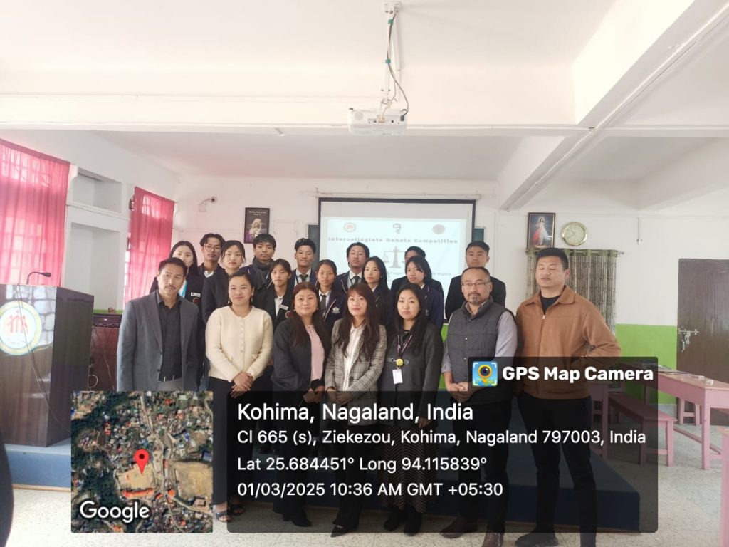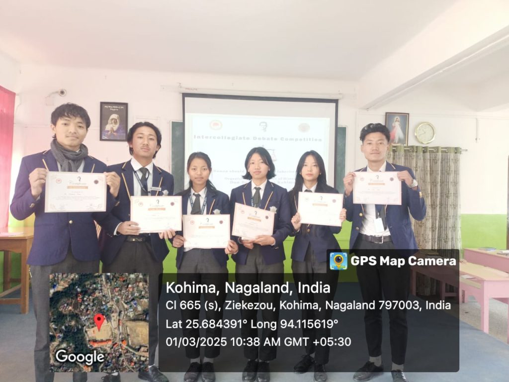The Department of History, Baptist College, participated in the inter-collegiate debate competition organized by the Department of History, Don Bosco College. The debate was held on the topic “Naga Women Should Have Property Inheritance Rights.” A team of six students from Baptist College—Mr. Thrunso K. (2nd Semester), Mr. Richard Kikon, Mr. Jesse Kapfo, Ms. Ruokuotuonuo Rio, Ms. M. LichanbeniShitiri, and Ms. Yanon—represented the institution. They were accompanied by four faculty members.